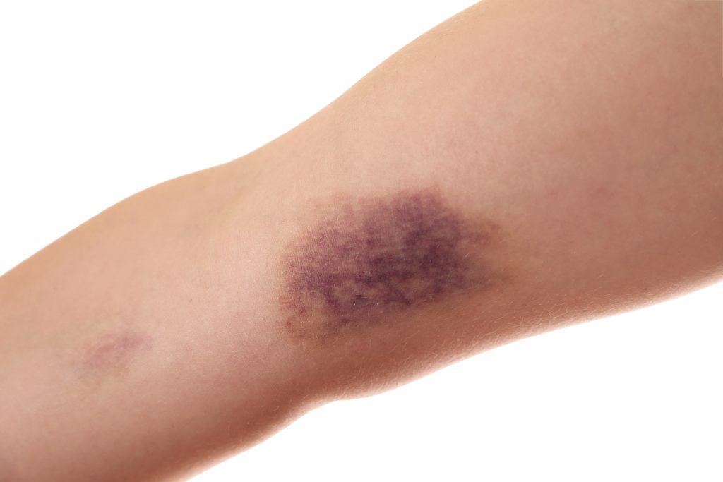 • Αλλαγή χρώματος του δέρματος (μελανιά) που μπορεί να ποικίλει από κόκκινο, μπλε ή μοβ στην αρχή, έως κίτρινο και πράσινο κατά τη διάρκεια της επούλωσης.